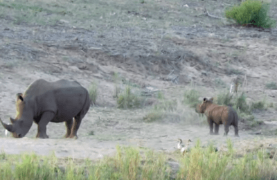 Nel video di pochi minuti, si può notare la madre rinoceronte che pascola mentre il cucciolo sgambetta allegramente al suo fianco nella savana. Ad un tratto, il piccolo rinoceronte prende la rincorsa per inseguire un uccello forse un gabbiano o dei piccioni della riserva. Una scena veramente deliziosa che ci mostra la bellezza e l’armonia che si crea tra gli animali allo stato selvatico e che al contempo documenta il loro modo di vivere, le relazioni e la convivenza tra specie diverse.