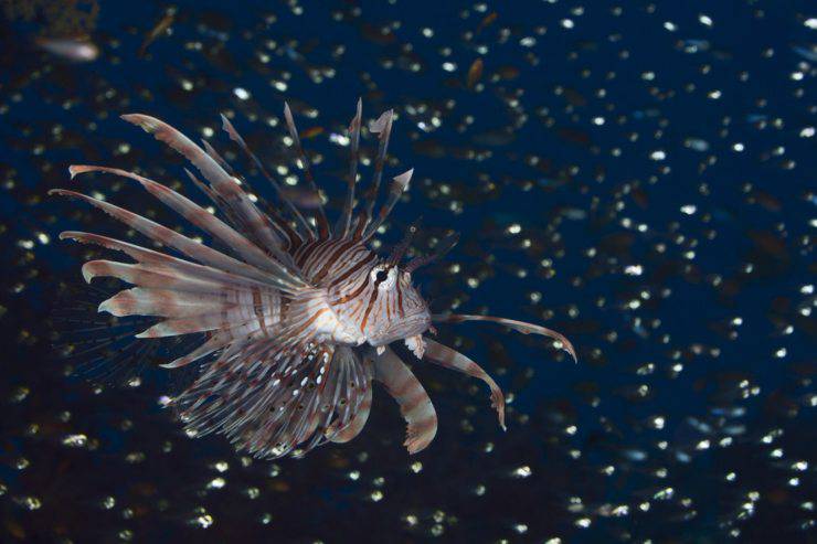 I pesci leone sono originari dell’Oceano Pacifico e sono anche conosciuti come pesci scorpione, Scorpena volante o con il loro nome scientifico Pterois volitans. In realtà sono considerati invasivi nel Nord America, perché non hanno predatori naturali ed eliminano le specie autoctone. Si riproducono rapidamente (rilasciano fino a 30.000 uova ogni 7 giorni!) e possono adattarsi facilmente a nuovi ambienti.