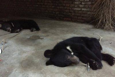 Eppure questa andatura, innaturale per gli orsi, rischia di avere serie ripercussioni sulla loro salute con danni anche permanenti. Altri cuccioli di orso vengono tenuti legati saldamente ad un gancio con una corda cortissima, che consente loro di spostarsi di appena qualche centimetro. E vengono costretti a compiere salti, spostamenti, ad alzare le zampe e ad effettuare altri trucchi a colpi di frusta o di mazza.