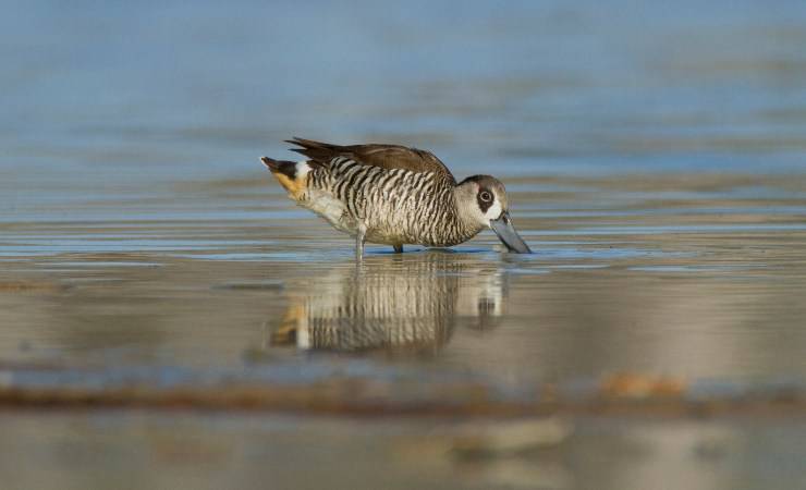 Si tratta di un’anatra di piccole dimensioni, simili a quelle di un Mestolone Europeo (Anas Clypeata).