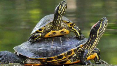 Detta anche: tartaruga dalle orecchie gialle o anche ‘scivolatrice dal ventre giallo’, questa testuggine ha le sue origini in America del nord, negli USA. Dal nome è facile intuire le sue caratteristiche: queste tartarughe hanno delle macchie gialle sulle guance. Il carapace, parte dell’esoscheletro ovvero la parte esterna della testuggine, cambia colore a seconda dell’età: quando è giovane è verde scuro per poi scurirsi fino al nero in età adulta, soprattutto nel sesso maschile. I maschi raggiungono i 15 cm mentre le femmine anche i 25 cm: il sesso dipende dalla temperatura cui sono esposte le uova. Esse infatti se deposte in luoghi con temperature inferiori ai 27˚ daranno alla luce dei maschi, mentre le femmine hanno bisogno di un calore pari o superiore ai 30˚. L’età media in libertà non supera i 20 anni, mentre in cattività può arrivare a superare la soglia dei 40. Amano il sole e sono rettili onnivori.