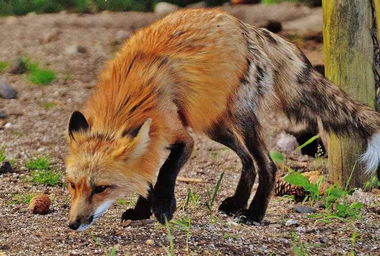 Quando non trova altro, mangia insetti, uccelli, uova, lombrichi e rifiuti di ogni genere. La sua furbizia proverbiale si palesa anche nell’abitudine di fare scorta di cibo. In condizioni di grande abbondanza, infatti, scava tante piccole buche da 5-10 cm dove nasconde il cibo.