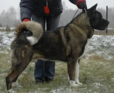 CARATTERISTICHE MORFOLOGICHE: È un cane di taglia grande, di costituzione solida, ben equilibrato, con molta sostanza e ossatura pesante. Gli occhi sono marrone scuro, relativamente piccoli, di forma pressoché triangolare. Le orecchie sono bene erette e piccole in relazione al resto della testa. La forma è triangolare, leggermente arrotondata all’estremità. La coda è grande e dotata di pelo folto, portata alta oppure arrotolata sul dorso o sui fianchi, oppure pendente al di sotto del dorso. Pelo: diritto, ruvido, rigido e leggermente rialzato; il sottopelo è spesso, soffice, denso e più corto del pelo esterno. Colore: è ammesso qualsiasi colore come il rosso, il fulvo, il bianco ecc.; anche macchiettato o striato. I soggetti bianchi uniformi non hanno maschera. Quelli macchiati sono di base bianca con macchie uniformemente diffusa che coprono oltre un terzo del corpo. Il sottopelo può essere di colore diverso dal pelo di copertura. Taglia: maschi 66-71 cm; femmine 61-66 cm.