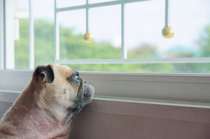 Cane aspetta il padrone seduto sul davanzale della finestra: paura dei passanti