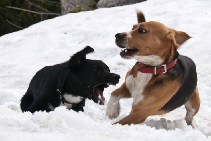 Anche l’impulso di proteggere le persone che il nostro pelosetto considera il suo branco, o di proteggere il suo cibo (o qualcosa che considera prezioso), può provocare il nostro cane ad attaccare un altro cane. Nel caso invece siano due cani che stanno giocando in modo amichevole, a scattare improvvisamente in una lotta vera e propria, la causa potrebbe essere la sovrastimolazione o che i cani si sono spinti un po’ troppo in là con il gioco, e si passa a un litigio.