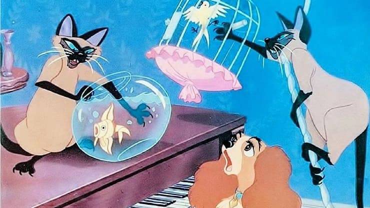 Non c’è dubbio che i cani siano gli indiscussi protagonisti del capolavoro Disney Lilli e il Vagabondo, ma in questo articolo noi di amoreaquattrozampe vogliamo approfondire il ruolo di altri due personaggi (minori ma non troppo) che hanno fatto discutere e rivedere le scene agli autori del colosso americano a distanza di molti anni. Chi sono questi personaggi? Ci riferiamo ai gatti, Si e Am. Nella pellicola del 1955 questi gatti sono rappresentati come sinuosi, ammalianti e combina guai tanto da mettere in cattiva luce la cagnolina Lilli che al contrario è buona e fedele.