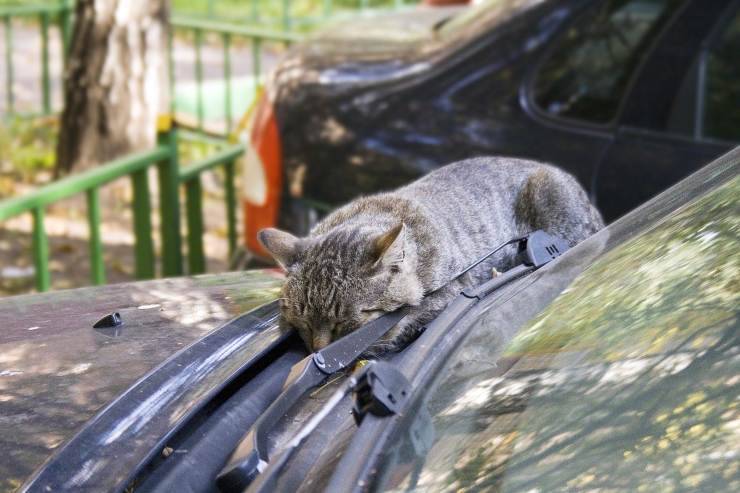 Stare sul tettuccio, sul cofano o comunque sull’abitacolo consente loro di guardare cosa accade in basso, di guardarsi bene dai predatori e anche potenziali prede da catturare. Insomma le macchine sono l’equivalente di un armadio o un mobile in casa! Insomma talvolta il gatto dorme in posti strani!