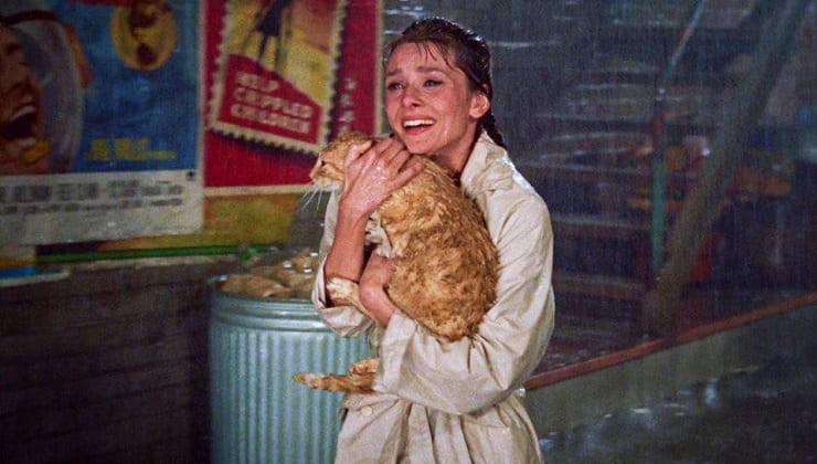Vi lasciamo con una frase iconica di Colazione da Tiffany pronunciata da Audrey Hepburn “Io e il mio gatto siamo due randagi senza nome che non appartengono a nessuno e a cui nessuno appartiene” e al ricordo della scena finale quando Audrey Hepburn e di George Peppard tengono stretto a loro Gatto, dopo averlo ritrovato, mentre si scambiano un dolcissimo bacio d’amore riparandolo dalla pioggia.