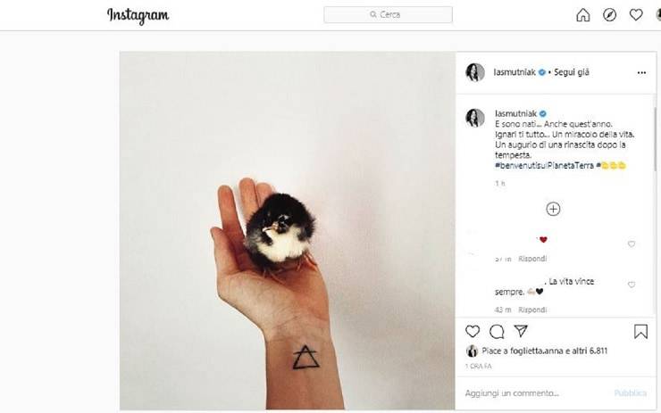 La modella e attrice polacca con un post sul social della fotografie, Instagram, ha voluto lanciare un messaggio di speranza a tutti i suoi followers. Una foto ritrae un piccolo pulcino bianco e nero appena nato sulla sua mano seguito da un pensiero “E sono nati… Anche quest’anno. Ignari di tutto… Un miracolo della vita. Un augurio di una rinascita dopo la tempesta #benvenutisulpianetaterra“.