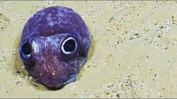 Spesso le profondità oceaniche nascondono specie animali mai viste prima. A volte sono davvero bizzarre, a volte sono addirittura spaventose. Ma in questo caso, quando il sottomarino che ha scoperto questo piccolo polipetto viola, di certo non avrà potuto che pensare di trovarsi di fronte a un animale davvero adorabile, che sembra uscito da un cartone animato con i suoi occhioni sgranati e il suo colore viola. Ed infatti, la Rossia pacifica (come è stato chiamato) ha un aspetto davvero particolare e molto carino.