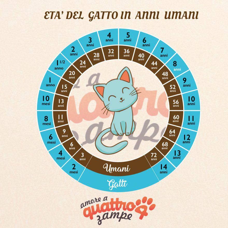 Ma cerchiamo di capire, invece, come si calcola l’età del gatto in anni umani: così come per i cani, non esiste una formula fissa, ma il calcolo cambia a seconda della fase di vita del tuo gatto. E’ un cucciolo, un gatto adolescente, un micio adulto o un gatto anziano?