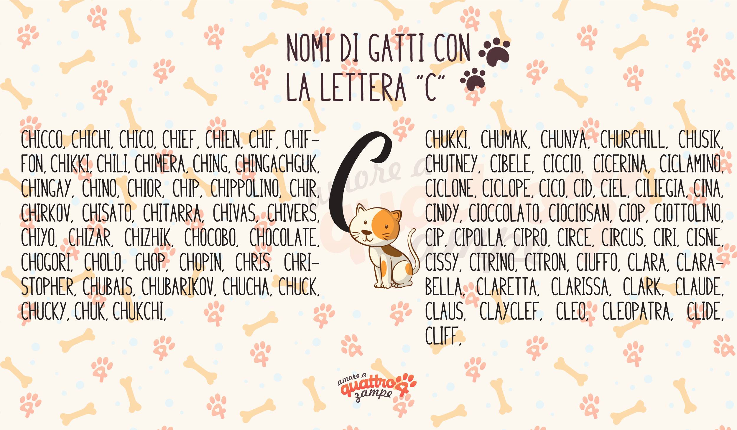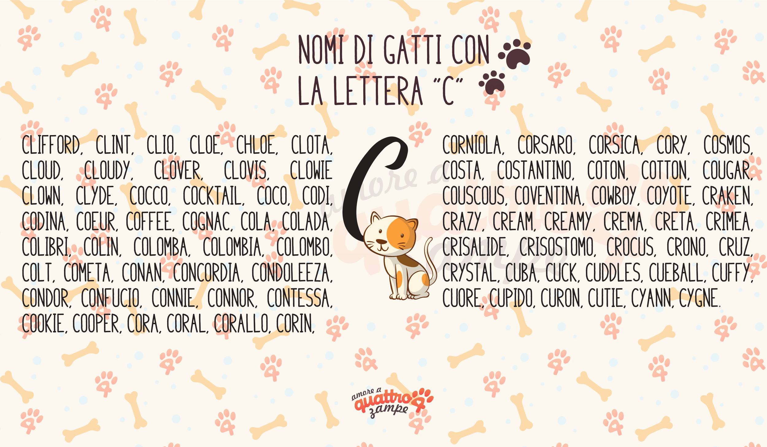 Se il tuo gatto ha il manto peloso bianco e sei alla ricerca di un nome che inizi con la lettera C puoi optare per “Cotton” oppure “Cream” o ancora “Crystal”. Se ha macchie marroni perché non chiamarlo “Cappuccino” o “Coffee”? In quest’articolo abbiamo raccolto un’infinità di proposte di nomi che iniziano con questa lettera dell’alfabeto. Non mancano richiami al mondo dei viaggi: si va dal quartiere di Londra “Chelsea” alla meravigliosa “Cuba”. Mettiti comodo e fai la tua scelta.