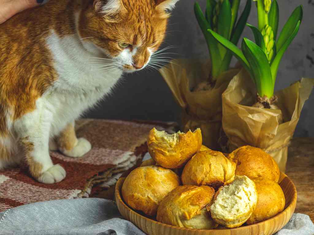 Essendo carnivori i gatti non hanno alcun bisogno di consumare prodotti composti da farina. Inoltre ingredienti come l’impasto della pizza o il pane possono provocare nel felino dei gas intestinali.