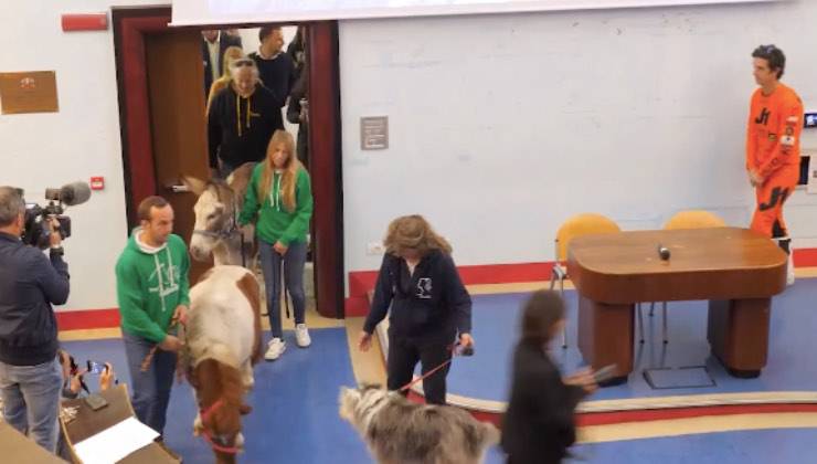 I 3 animali, Arturo, Ciska e Salvo aiutano i bambini del reparto di neuropsichiatria: l’incontro in Aula Magna