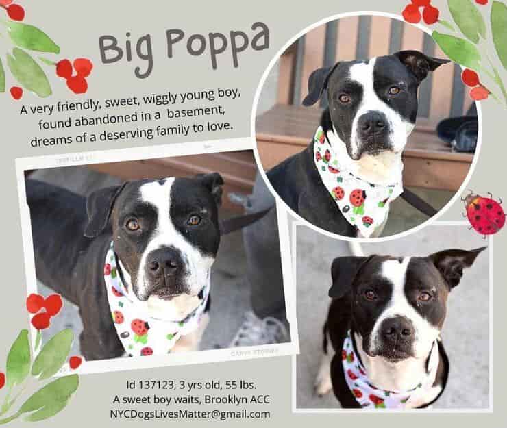 “È stato trovato abbandonato in una cantina” inizia così il racconto della Dogs Lives Matter – Saving NYC Dogs, sulle vicende che hanno visto protagonista Big Poppa. Il cucciolo infatti abbandonato in una cantina, ora non vive bene il canile. Gira in tondo nella sua gabbietta, afferrando la copertura della grondaia.
