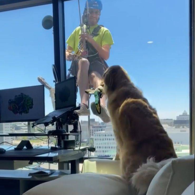 La maggior parte dei cani adora fare nuove conoscenze e trovare nuovi amici, specie se ciò accade in modo inaspettato. Quando un evento inatteso si verifica gli animali domestici provano una grandissima gioia e felicità, che dimostrano nei modi più dolci e divertenti. Un po’ come è successo a un adorabile cagnolino, il cui video su Instagram sta ottenendo migliaia di visualizzazioni. Tofu, questo il nome del meraviglioso esemplare di razza Golden Retriever protagonista del filmato, ha cercato di fare amicizia nientemeno che con un lavavetri appeso fuori dalla finestra dell’appartamento in cui vive, in un alto grattacielo degli Stati Uniti.