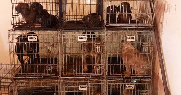 40 animali in condizioni disumane trovati impilati in gabbie pronti per essere venduti salvati dalla polizia. Gli agenti indagano sui responsabili dell’allevamento illegale.