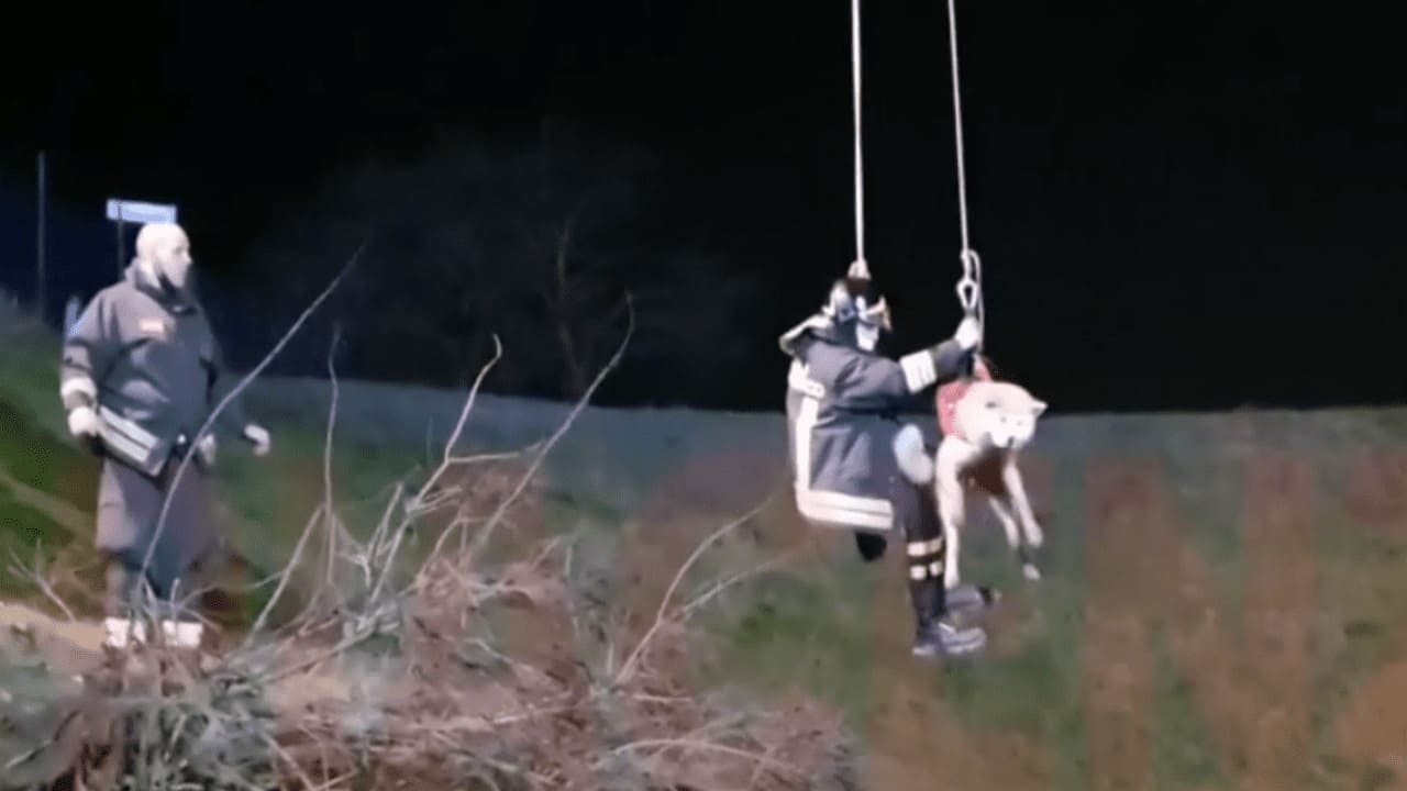 Aci, nonostante l’indubbio spavento che avrà preso, è parso piuttosto tranquillo durante le operazioni di salvataggio. Merito dei soccorritori, che prima di imbragare il cane lo hanno tranquillizzato, facendogli capire che erano lì per salvarlo.
