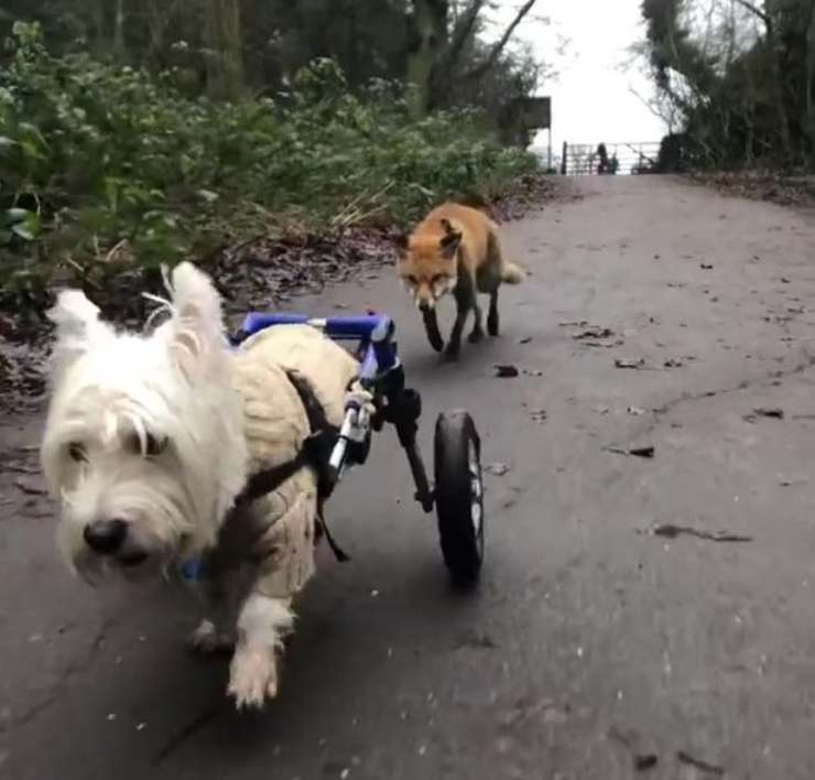 Una storia da favola, una volpe cieca è stata salvata e ha trovato una guida: un cane disabile che lo porta al parco