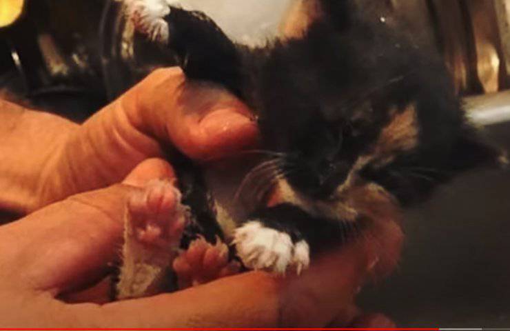 Le immagini, infatti, mostravano chiaramente la presenza di un piccolo animaletto. George Miller, inizialmente, pensò che si trattasse di un roditore; guardando meglio, però, si rese conto che era un cucciolo di gatto. L’uomo, facendo estrema attenzione per non ferire il gattino, è riuscito ad allargare la fessura nel muro e a estrarre il micetto sano e salvo. Probabilmente il piccolo sarà stato portato in quel nascondiglio dalla madre la quale sperava così che sarebbe stato al sicuro. Per motivi non conosciuti, però, la mamma del gattino non è più tornata a prenderlo. Per fortuna il cucciolo, ribattezzato con il nome di “Mister Jingles“, era in salute e non aveva alcuna ferita. Come George ha scoperto poi portandolo dal veterinario, il quattro zampe era in realtà una micetta calico di un mese di vita (i gatti “calico” sono gatti appartenenti a qualsiasi razza caratterizzati da occhi solitamente color verde e da un manto dalla triplice colorazione composto in prevalenza di colore bianco o nero con macchie arancioni e nere o talvolta con macchie color crema e grigie). Anche se avrebbe voluto tenere la piccola quattro zampe, l’uomo consapevole che non si sarebbe potuto prendere cura di un altro animale domestico ha iniziato a cercare una famiglia per la cucciola. Fortunatamente la sua vicina di casa era alla ricerca di un nuovo gatto e così ha adottato Jingles. Grazie all’intelligenza del Labrador Crosby, la gattina è stata salvata e adesso può trascorrere una vita serena e tranquilla in una casa tutta per sé. (di Elisabetta Guglielmi)