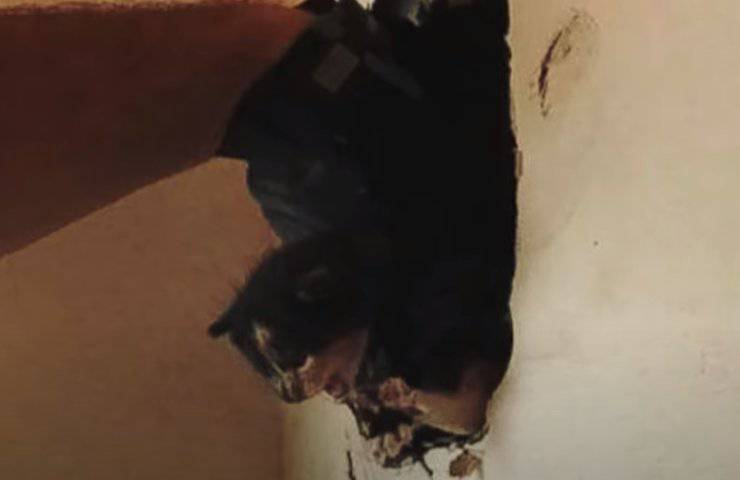 Accortosi che il suo cane fissava il muro tutti i giorni, un uomo ha collocato una telecamera per capire quanto stava accadendo: nell’intercapedine era nascosto un cucciolo di gatto.