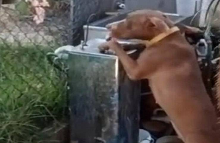 Cane impara a bere da solo dall’abbeveratoio: le immagini fanno il giro del web