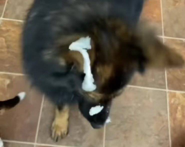 I cani amano il cibo e si potrebbe dire che è il loro tallone d’Achille, il modo in cui questi due mangiano la panna montata è virale – VIDEO.