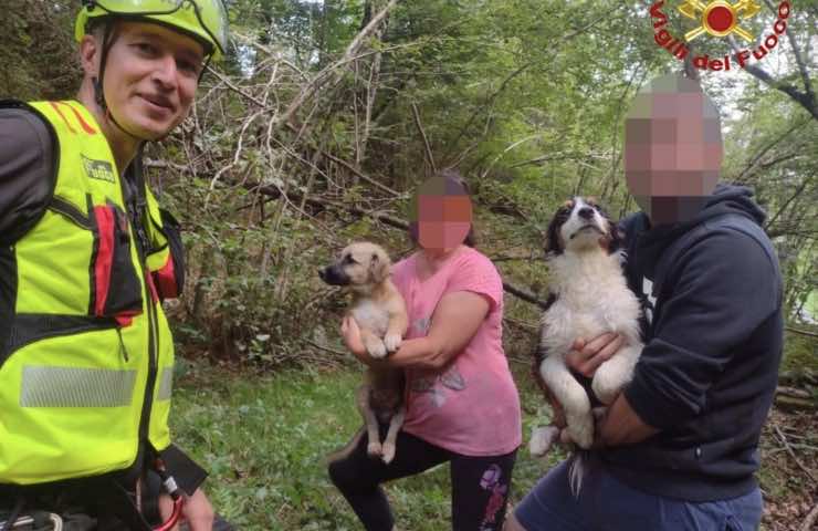 Cuccioli di cane scivolano, davanti agli occhi dei padroni attoniti, nella gola della montagna