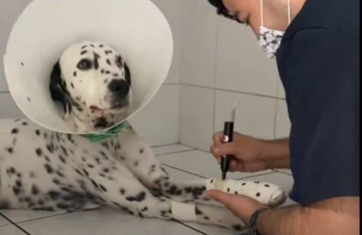 Il video del Dalmata più tenero del web: ha una zampetta ingessata e il veterinario gli disegna le macchie sulla fasciatura