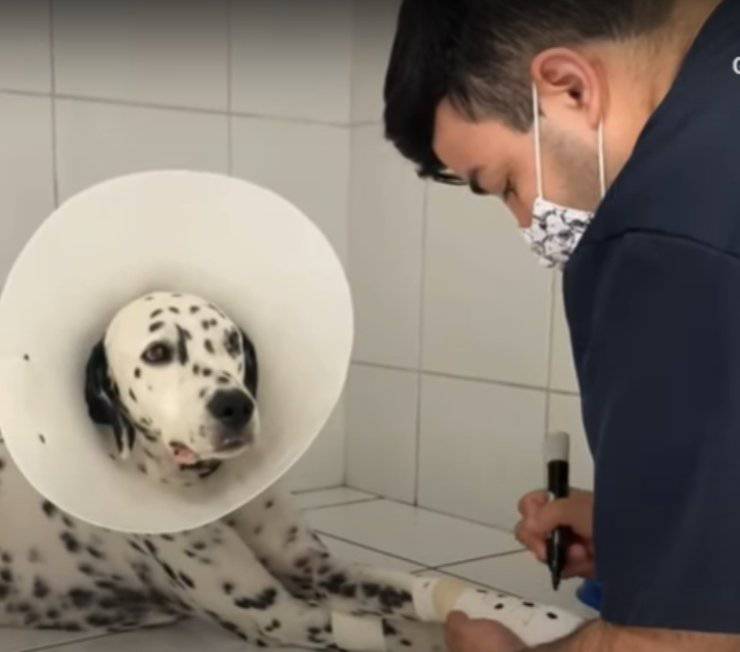 Lucas Rodriguez (@Lucas Rodriguez). Il Dalmata, di nome Yeso, è stato portato dal veterinario per curare una frattura alla zampetta anteriore. Un giovane medico, Micael Fernández, si è occupato del cagnolino, ingessandogli la zampa. Poi, resosi conto dello sconforto del suo paziente a quattro zampe, ha pensato di rallegrarlo con un gesto molto dolce e spontaneo: ha preso un pennarello nero e ha iniziato pazientemente a disegnare le macchie sopra al gesso bianco per replicare quelle che il cucciolo, come tutti i Dalmata, ha su tutto il manto. Ad un certo punto il veterinario ha interrotto il disegno per dare un tenero bacio al cane, che ha iniziato subito ad agitare la coda felice.