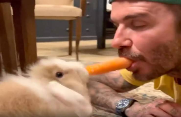 L’ex calciatore David Beckham ha condiviso un video sul suo profilo Instagram mentre divide una carota con il bellissimo coniglio di famiglia