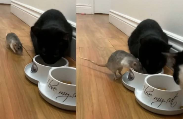 Il filmato è stato postato sulla pagina Instagram @dr.rodents, dedicata a tutti gli «amanti di gerbilli, criceti, porcellini d’India, topi e ratti» (come si legge in lingua originale sul profilo social «for all the gerbil, hamsters, guinea pig, mice and rat lovers»). Nel video è possibile vedere due gatti neri intenti a mangiare le crocchette dalle loro ciotoline.