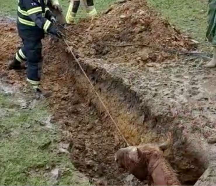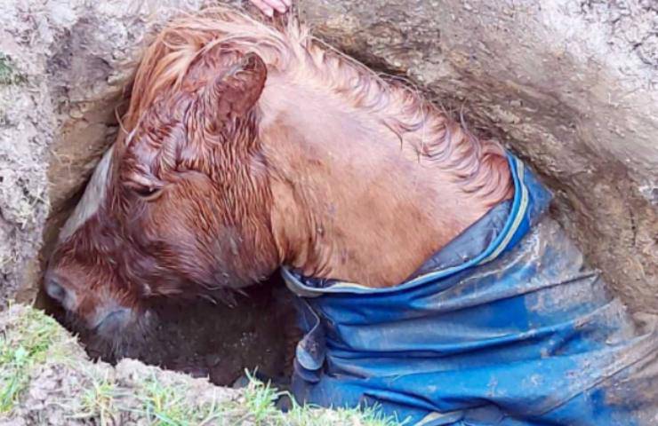 Il salvataggio disperato dell’anziano cavallo Prince, rimasto bloccato per ore in una buca (FOTO)