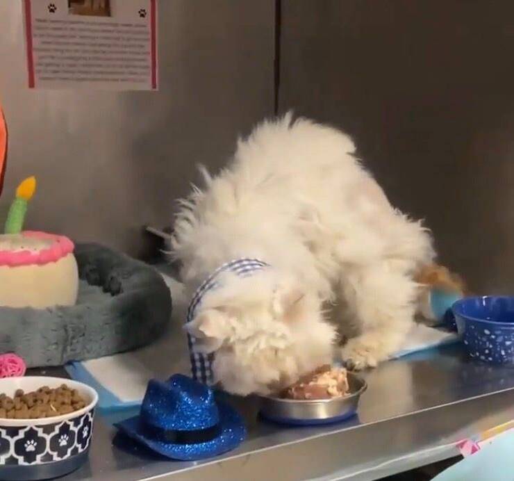 Il 15 giugno sarebbe stato il suo compleanno, e così gli operatori della struttura hanno deciso di organizzargli una festa di compleanno, sperando così, di riuscire a trovare anche qualcuno che lo volesse prendere con se. La festa è stata un successo e l’intera giornata indimenticabile, soprattutto per l’anziano micio che ha approfittato per prendere coccole da tutti i presenti.