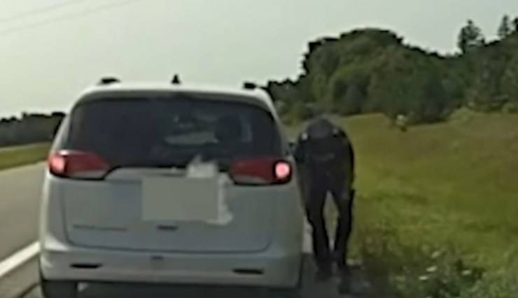 A pubblicare il video è stata la pagina Twitter dell’OPP di Cambridge, dove mostra il momento esatto in cui un agente di polizia ha fermato un furgone sul lato della Highway 7/8 a Kitchener, per poi accorgersi dell’arrivo di un ospite speciale. Poco dopo aver fermato il vicolo, l’agente ha sentito provenire dal fossato dietro di lui strani rumori.