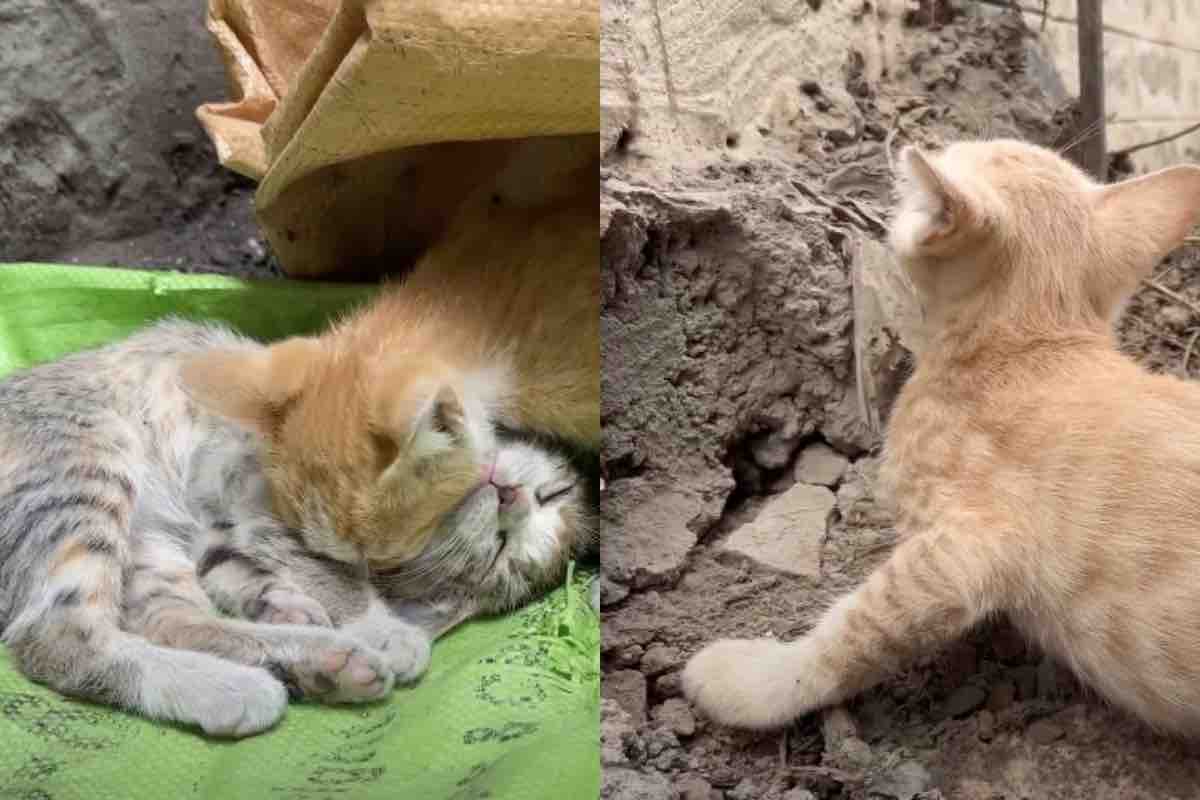 L’uomo ha dapprima assistito alla scena in cui il gattino arancione si avvicinava teneramente al secondo piccolo felino orfano che giaceva sdraiato a terra come se stesse dormendo. Purtroppo la situazione era più grave del previsto. Il gattino a terra emetteva, a ogni respiro, un preoccupante sibilo. Per fortuna, però, l’uomo che aveva scoperto la sofferente condizione di entrambi i gattini era un volontario pronto ad aiutare i cuccioli di gatto abbandonati e che, proprio quel giorno, aveva deciso di portare del cibo ai felini bisognosi della zona.