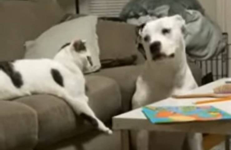Il video, che ha ottenuto migliaia di visualizzazione in poche ore e centinaia di commenti divertiti da parte degli utenti, mostra come alcune volte la convivenza tra cani e gatti in casa non sia sempre semplice.