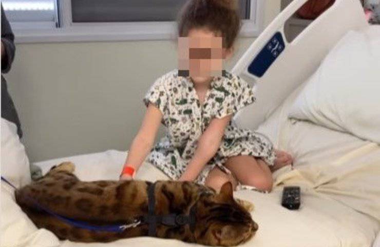 Gli animali hanno il potere di infondere felicità nelle persone, lo dimostra anche un gatto che si reca al reparto pediatrico e attua la sua terapia delle fusa – VIDEO.