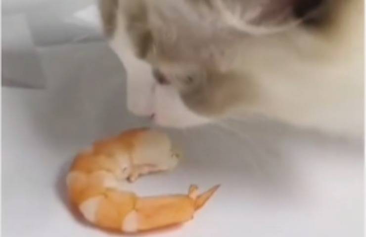 Un gatto sogna di mangiare un gamberetto e al suo risveglio se lo trova davanti, la sua reazione è divertente: tutti i dettagli