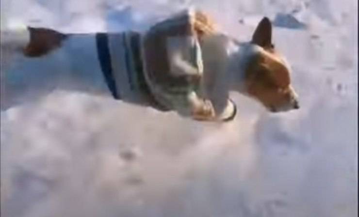 Corre alla velocità della luce il piccolo Jack Russell più veloce di uno slittino sulla neve. Il nuovo gioco lo fa impazzire.
