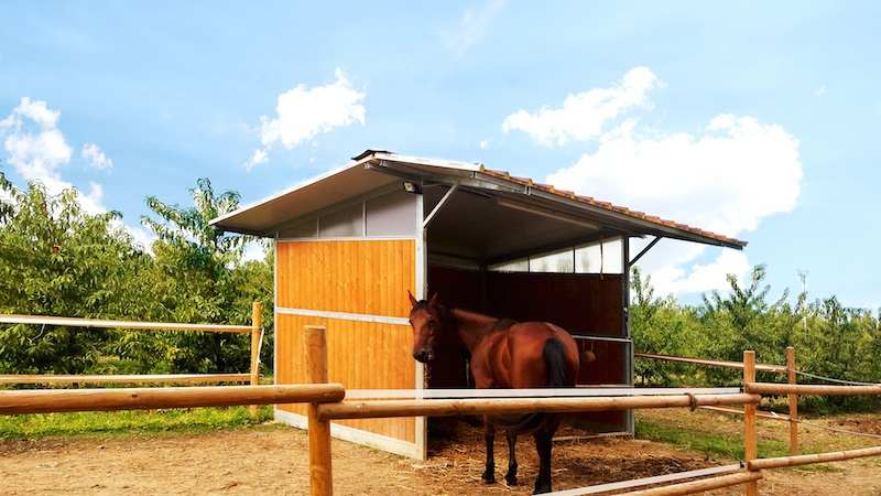 Anche i cavalli che vivono all’esterno, ovvero in paddock, devono avere uno spazio coperto dove riposare di notte o proteggersi dal sole.