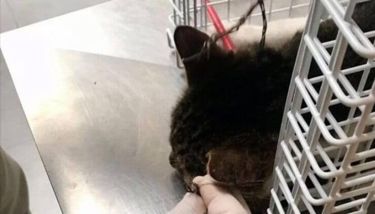 Il felino viene portato al canile di Monza, dove viene sedato per poter essere curato.