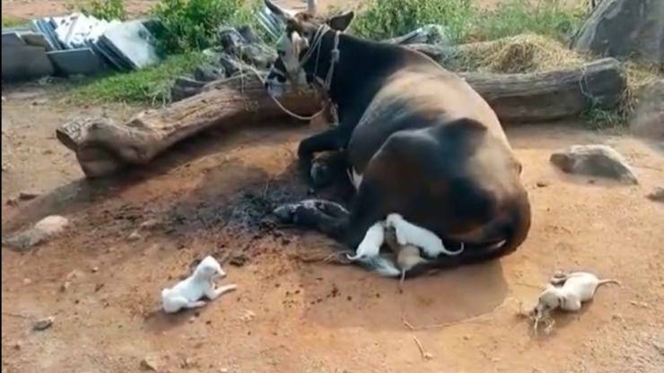 Una storia commovente è stata registrata in India dove una mucca ha “adottato” sette cuccioli rimasti orfani dopo che la loro madre è morta subito dopo la loro nascita. L’agricoltore Hanumantha Saali ha affrontato un problema complesso, poiché la sua cagnolina è morta poco dopo aver dato alla luce questa cucciolata e quindi i cuccioli, fin da subito, non sono stati nutriti in modo adeguato con il latte materno. Per fortuna in soccorso dell’agricoltore è venuta la sua mucca.