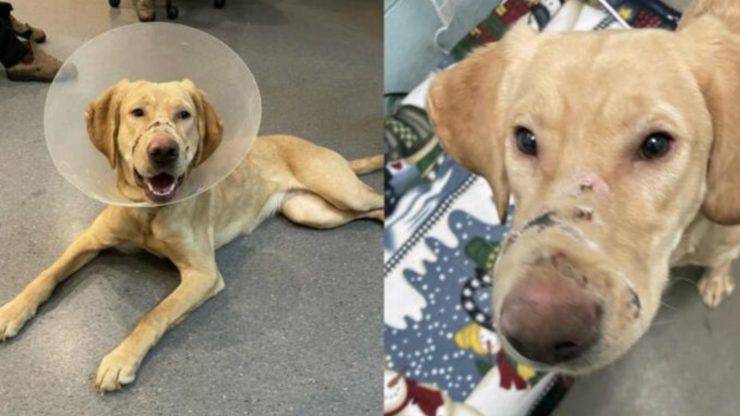Il cane presentava gravi segni di maltrattamento e la sua museruola era praticamente incollata al suo muso, lo hanno trovato così – FOTO.
