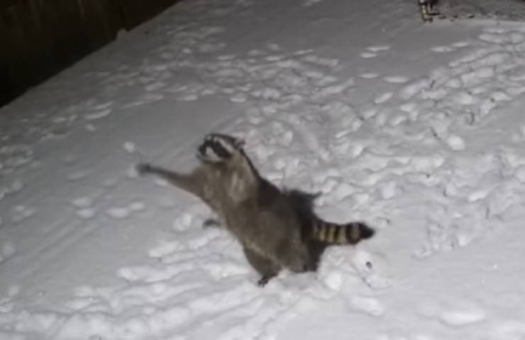 Il piccolo mammifero, colpito dalla bellezza dei fiocchi di neve, ha interrotto la sua ricerca di cibo per fermarsi ad ammirare la distesa innevata del giardino. Dopodiché il procione si è sollevato sulle zampe posteriori e in posizione eretta ha cercato ripetutamente di afferrare le neve che cadeva. Il video realizzato dalle telecamere di sicurezza è stato salvato da Timothy, che lo ha condiviso poi sui social per ricordare a tutti gli utenti del web che qualsiasi specie animale ha i suoi sentimenti, i suoi desideri e soprattutto le sue passioni. La passione dell’adorabile procione protagonista del filmato, ad esempio, è proprio quella di giocare con la neve e ammirare il paesaggio durante la fredda stagione invernale. (di Elisabetta Guglielmi)