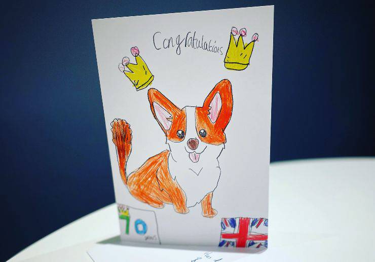 Non è un segreto che la Regina inglese sia un’appassionata del mondo animale, in particolare per una razza di cane specifica: il Corgi. Questo tipo di cane le ha rubato completamente il cuore e nel corso della sua vita ha posseduto una trentina di cani, tutti appartenenti a questa razza specifica. La bambina, sapendo quanto la Regina amasse gli animali e i Corgi, ha disegnato sulla cartolina di auguri proprio un cagnolino di razza Corgi, accompagnato da un bellissimo messaggio di congratulazioni per i suoi 70 anni di regno.