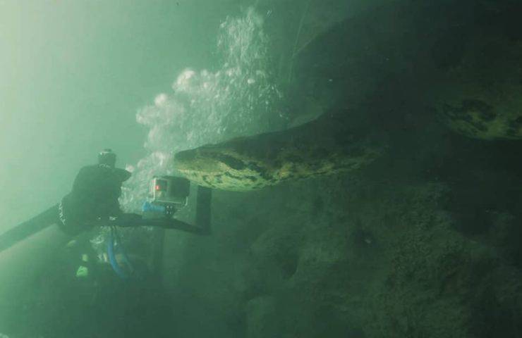 Le anaconde, rettili che vivono in zone paludose o fluviali, dell’America Meridionale, Brasile e foresta Amazzonica, sono serpenti costrittori: non dispongono di veleno ma uccidono la loro preda soffocandola. L’anaconda incontrata dal sub italiano avrebbe potuto uccidere l’uomo senza difficoltà; gli attacchi di questi serpenti agli esseri umani sono però molto rari, in quanto le anaconde tendono a evitare il contatto con le persone. Come è possibile vedere dai filmati condivisi su Instagram, il rettile si è limitato ad avvicinarsi incuriosito e attratto dalla luce al sommozzatore, per poi allontanarsi. Ancora una volta, Bartolomeo Bove è stato molto fortunato; l’incontro nelle profondità oscure del fiume gli ha lasciato un ricordo vivido anche grazie alle incredibili riprese subacquee da lui realizzate. (di Elisabetta Guglielmi)