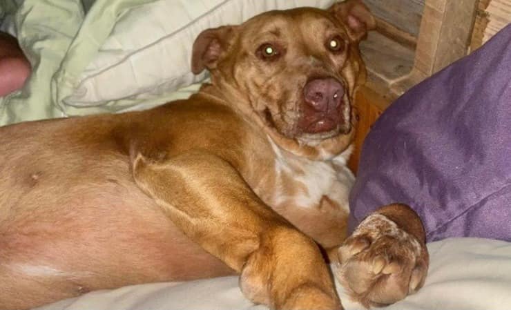 Con grande sollievo di tutti, grazie al post pubblicato le famiglie si sono trovate e Felecia ha potuto subito riabbracciare il suo amico a quattro zampe del cuore. Nonostante la gioia nel ritrovare la mamma umana, il cane “imbucato” nella casa della coppia, non voleva sapere di alzarsi da quel soffice e caldo letto.