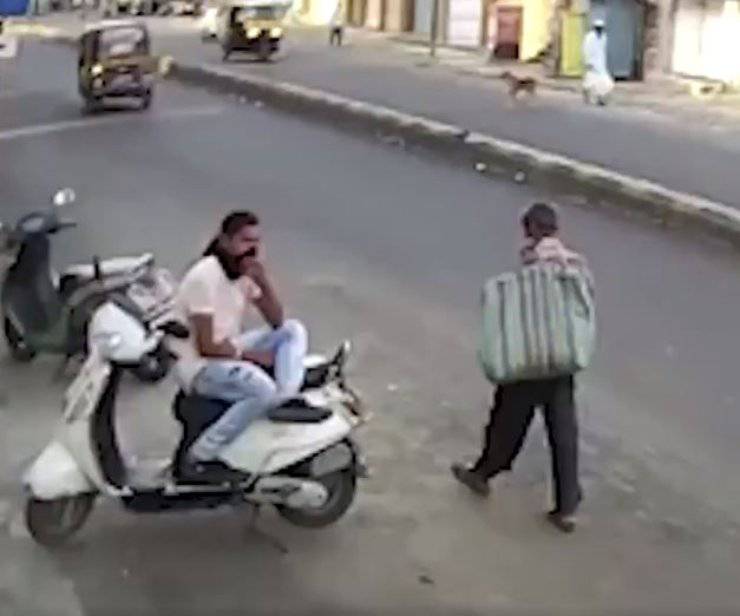Il filmato mostra un uomo che, per tentare di prendere a calci un cane, ha quasi rischiato di ucciderlo, investendolo, ma poco dopo è rimasto vittima di un terribile incidente.