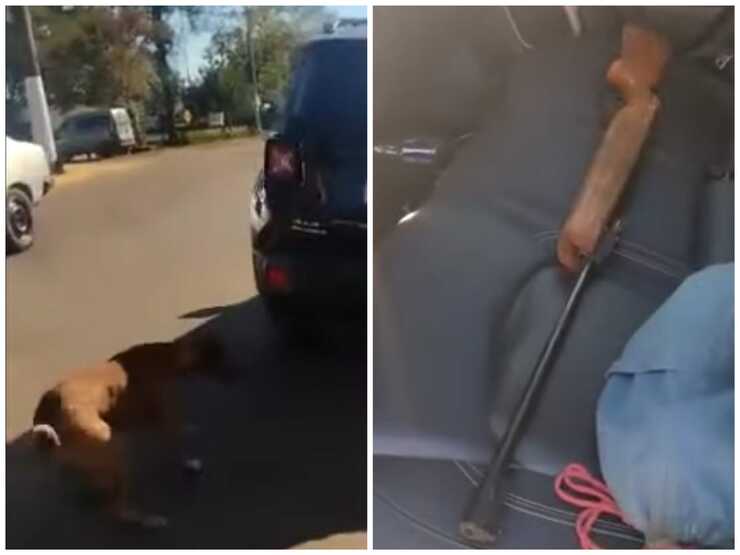 Un uomo è stato fermato da alcuni testimoni che hanno notato il cane legato alla macchina , immediatamente qualcuno ha pensato bene di riprendere tutta la scena per avere delle prove di quello che stava accadendo.